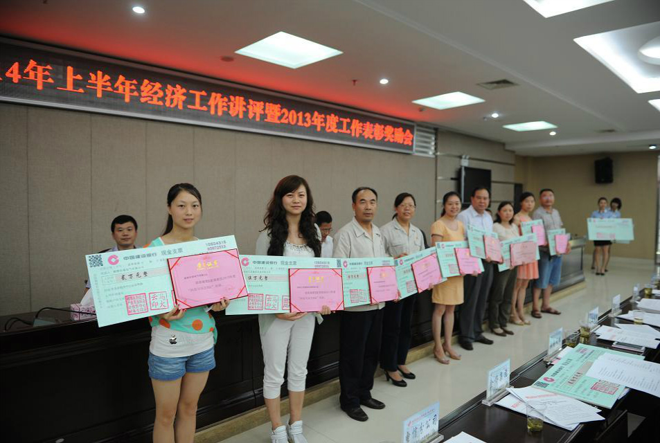湘潭高新區(qū)2014年上半年經(jīng)濟(jì)工作講評(píng)暨2013年度工作表彰獎(jiǎng)勵(lì)會(huì)在高新區(qū)創(chuàng)新大廈召開(kāi)。湖南世優(yōu)電氣股份有限公司在以彭建國(guó)董事長(zhǎng)為首的高管團(tuán)隊(duì)的正確領(lǐng)導(dǎo)下經(jīng)過(guò)全體員工的共同努力取得了可喜的成績(jī)。在此次高新區(qū)的表彰獎(jiǎng)勵(lì)會(huì)上獲得一項(xiàng)“新三板”掛牌股改先進(jìn)企業(yè)獎(jiǎng)勵(lì)、兩項(xiàng)科技與自主創(chuàng)新獎(jiǎng)勵(lì),并在現(xiàn)場(chǎng)分別領(lǐng)到125萬(wàn)、5萬(wàn)、2萬(wàn)元的支票獎(jiǎng)勵(lì)。
