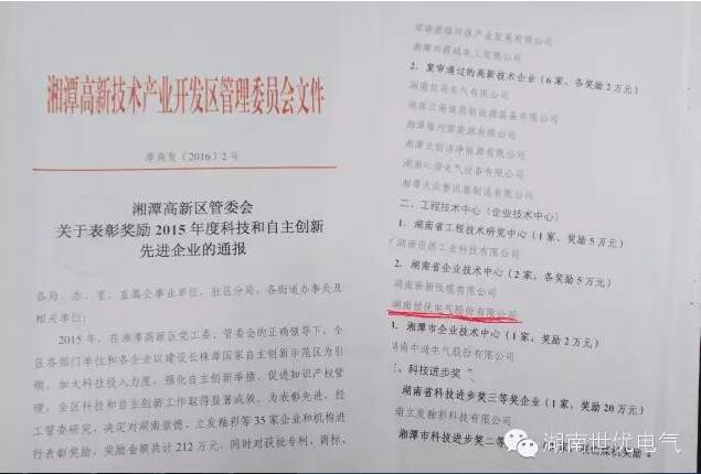 近日,湘潭高新區(qū)召開工委經(jīng)濟工作暨獎勵大會,世優(yōu)電氣作為高新區(qū)科技創(chuàng)新重點企業(yè),在此次表彰獎勵會上滿載而歸,憑借“湖南省企業(yè)技術中心”、“湘潭市財源建設先進單位”、“湘潭高新區(qū)知識產(chǎn)權(quán)優(yōu)勢企業(yè)”3塊金字招牌捧多個獎項。